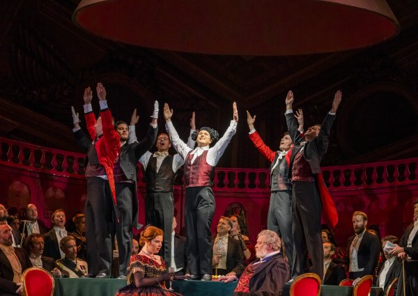 - Elenco: Violetta Valéry – ERMONELA JAHO , Alfredo Germont – GIOVANNI SALA , Giorgio Germont – ALEKSEI ISAEV , Annina – VEENA AKAMA-MAKIA , Doctor Grenvil – BARNABY REA , Flora Bervoix – ELLEN PEARSON , Barón Douphol – SAM HIRD , Gastone de Letorières – GIORGI GULIASHVILI , Marqués d’Obigny – OSSIAN USKINSON